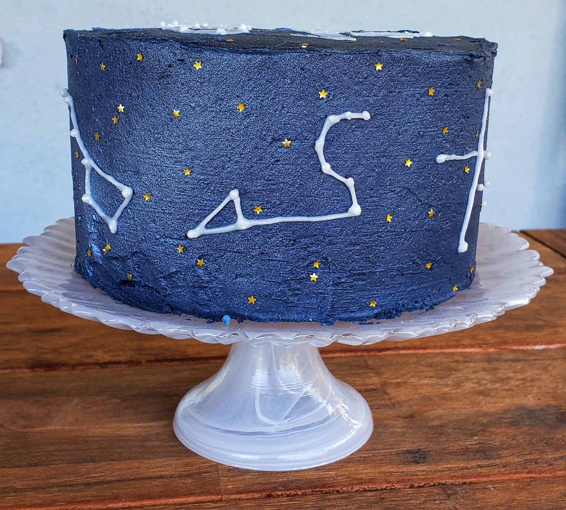 This constellation/zodiac cake was made for a couple who are fans of astronomy.